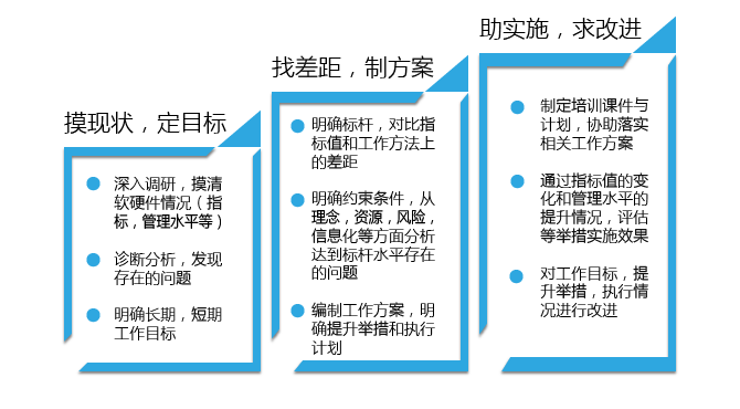落地實(shí)施方面,結(jié)合專(zhuān)業(yè)需求,元韜提供“調(diào)研診斷——對(duì)標(biāo)分析——目標(biāo)制定——目標(biāo)分解——提升舉措——輔助實(shí)施——持續(xù)完善”的一體化服務(wù)和針對(duì)某一階段的專(zhuān)項(xiàng)服務(wù)。