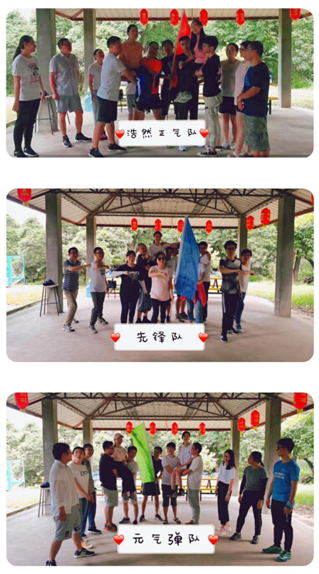 ? ? ? 為了各自的隊(duì)伍文化,大家都熬盡了腦汁,展現(xiàn)出來(lái)的盡顯青春朝氣,很Nice~ 最后以“浩然正氣隊(duì)”、“先鋒隊(duì)”、“元?dú)鈴楆?duì)”獨(dú)出心裁的團(tuán)隊(duì)隊(duì)形登場(chǎng)拉開(kāi)了拓展訓(xùn)練的序幕!每個(gè)項(xiàng)目的最終勝利將“花落誰(shuí)家”?不急,我們看氣勢(shì)!畢竟氣勢(shì)不能輸!哈哈~