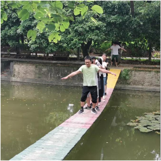 ? ? ? 此次拓展之旅以分組競(jìng)賽的形式進(jìn)行,伙伴們依據(jù)教官的指令在最短的時(shí)間內(nèi)分好隊(duì)伍、選出隊(duì)長(zhǎng)和確定隊(duì)名口號(hào)。